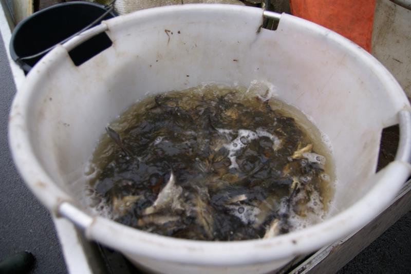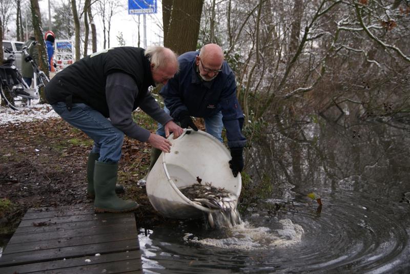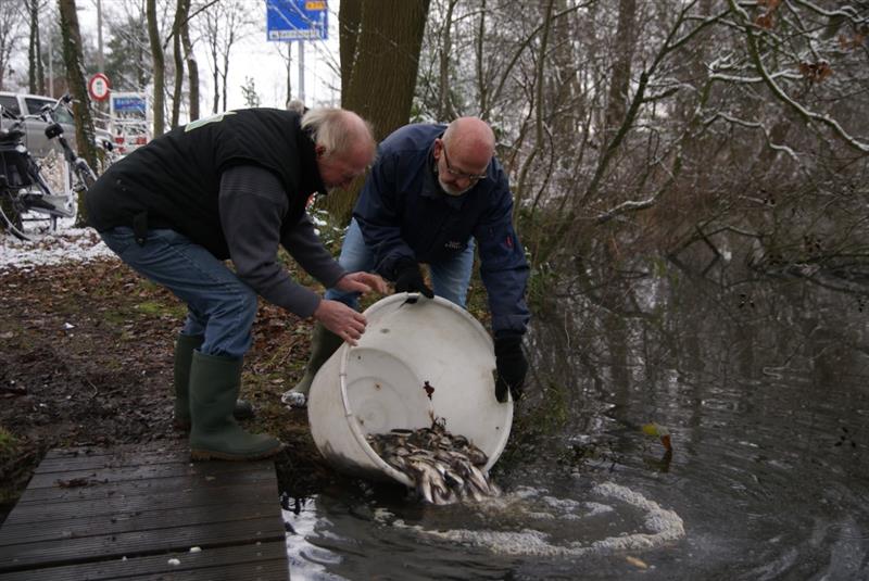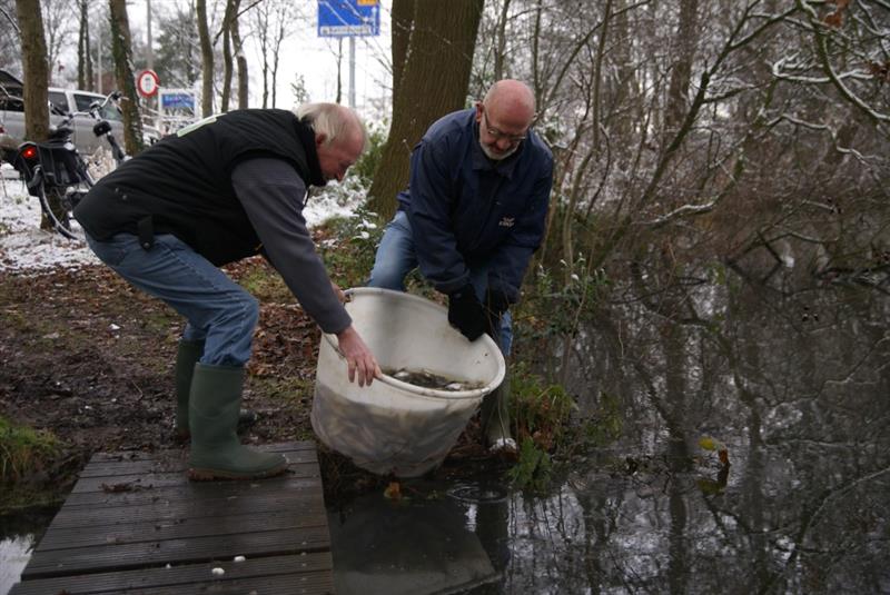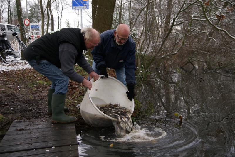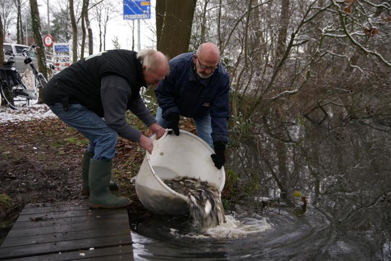Nieuwe witvis voor 'De Belte' een verzameling van kleine vissen worden in 'De Belte' losgelaten.